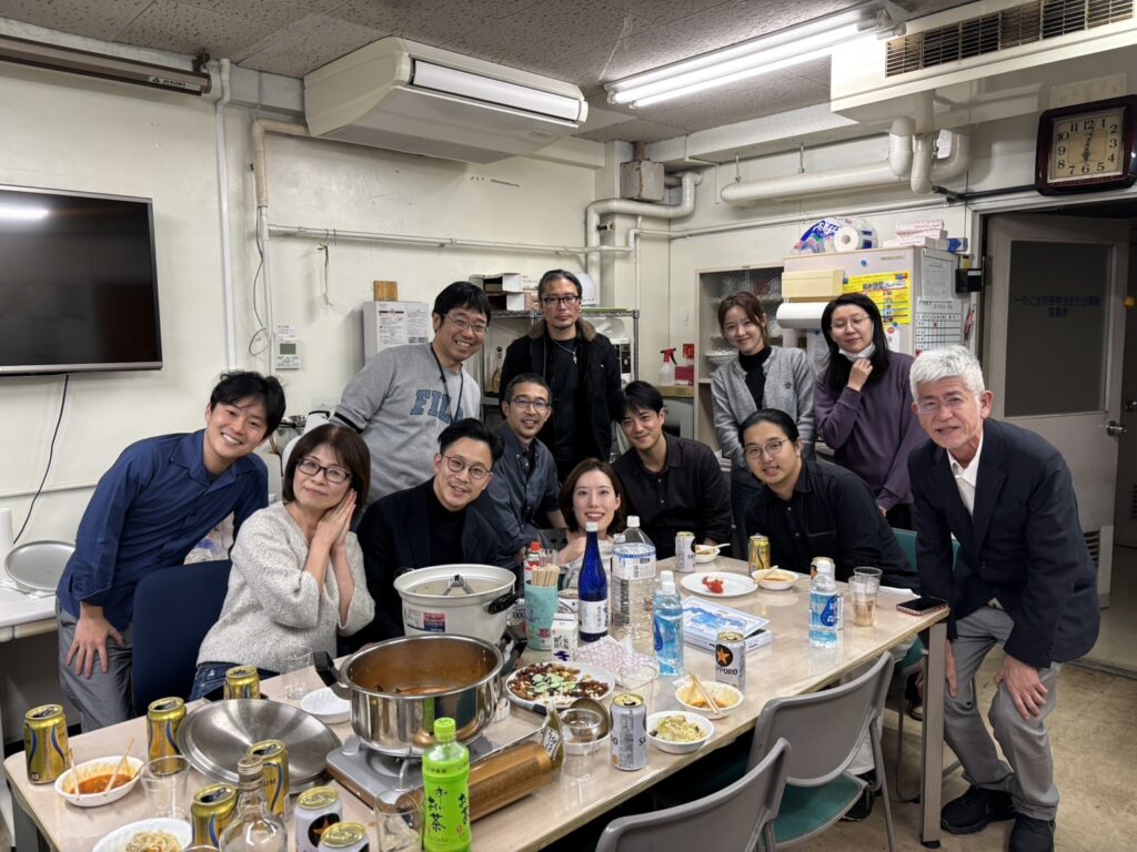 年末報告会の後に忘年会を行いました。高仲さんが美味しい鍋を作ってくださいました(塚崎)